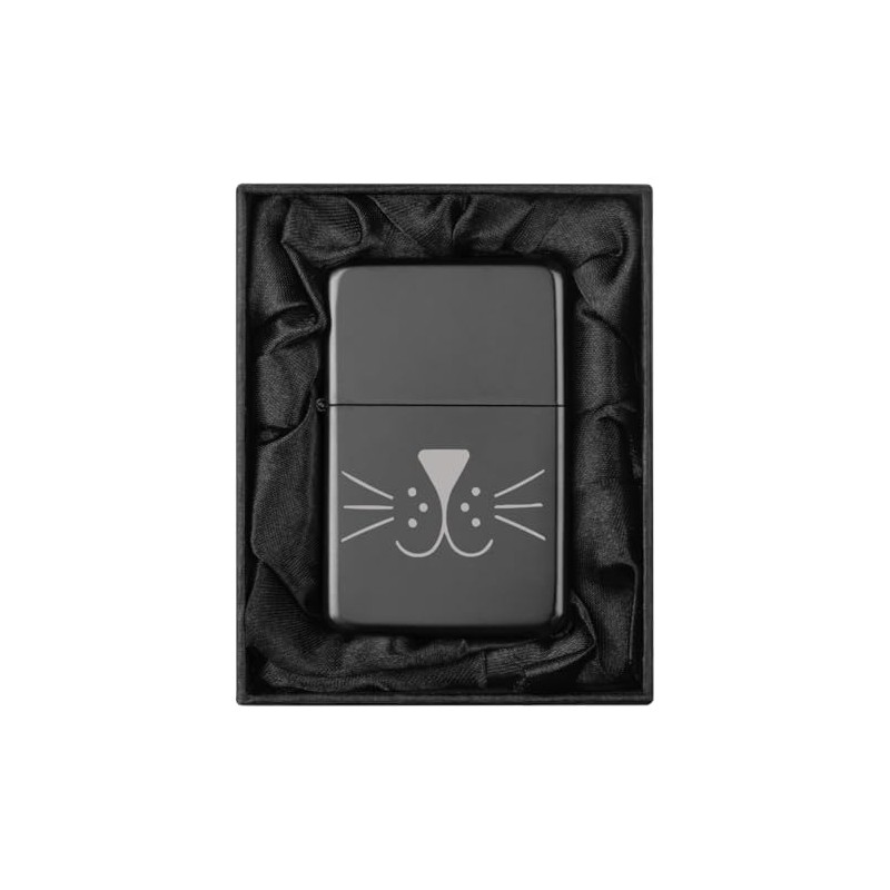 Lighter in Black Silk Lined Gift Box Cat Face Whiskers (Black)