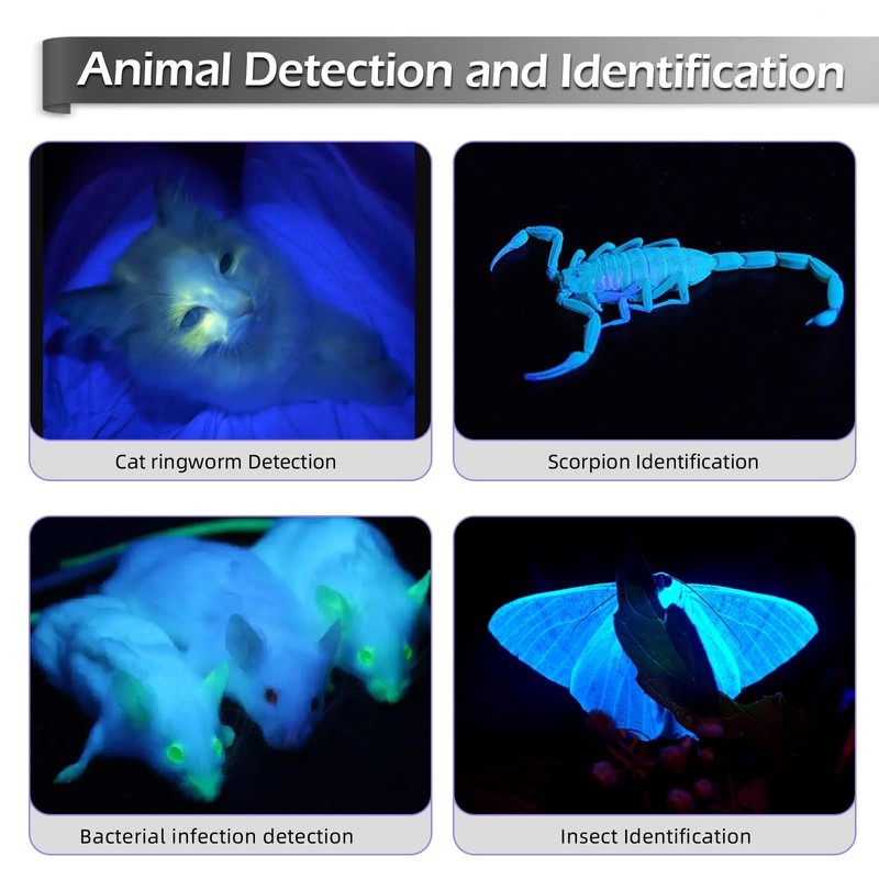 - Multitask application in profession: such as detecting counterfeit documents, money verification, forensic science, gasoline inspection, amber and jewelry detection, body fluid detection and fluorescence, attracting certain breeds of fish or hunting scorpions and tracking other creatures.