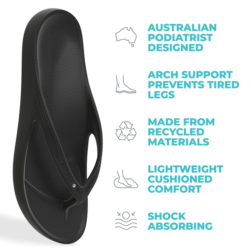 Feel good wearing your LightFeet orthotic thongs - Our corrective flip flops with diamond and arch support for women are the perfect summer time footwear for the beach or casual wear compliment. Not only do our healing sole flip flops provide maximum arch support, but also ultra comfort from our EVA foam material and Heel cup support design. Whether you need foot support, high arch support, Arch heel support, toe support, or orthotic support, our arch flip flops have an arch support flip flop to support a range of foot related problems including: heel pain, foot pain, plantar fascitis, flat feet arch support, foot cramps, foot sole pain and even toe clawing pain.