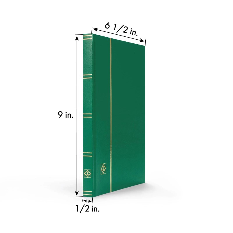 QUALITY CRAFTSMANSHIP: This stockbook's beautiful green cover with gold embossing adds an elegant and timeless look to your collection, with durable, rigid binding and glassine interleaves to ensure that your stamps are protected.