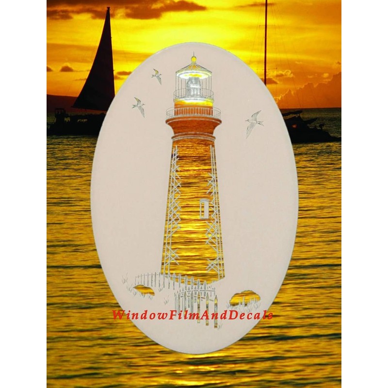Lighthouse Oval Etched Window Decal Vinyl Glass Cling - 15" x 23" - White with Clear Design Elements