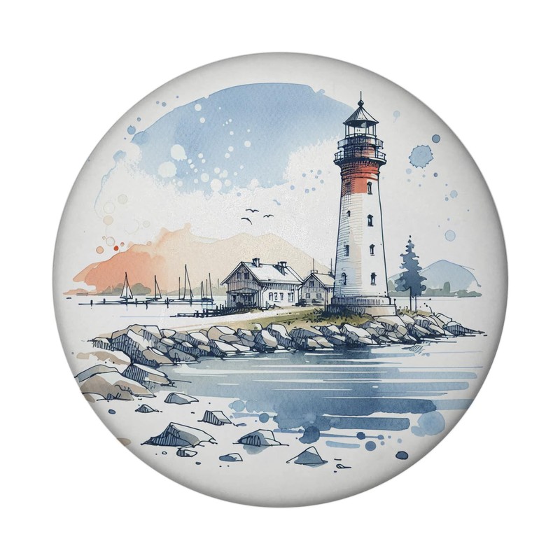 - Ready for departure? Get the round magnet as an ode to the architecture of navigation! Even through foggy fridge days, it navigates you to the next meal. For all those who get not only lake but also fridge woe at the sight of the lighthouse and sea