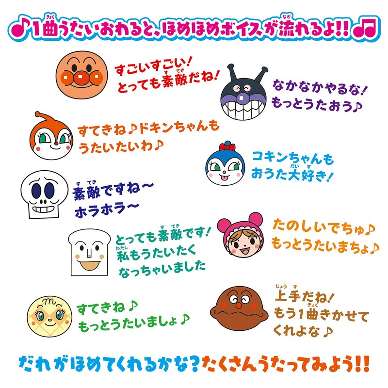 - When you finish a song, you can play "homemote voice" from Anpann or Tummy There are 50 kinds of talking about 8 people of Amperman and friends