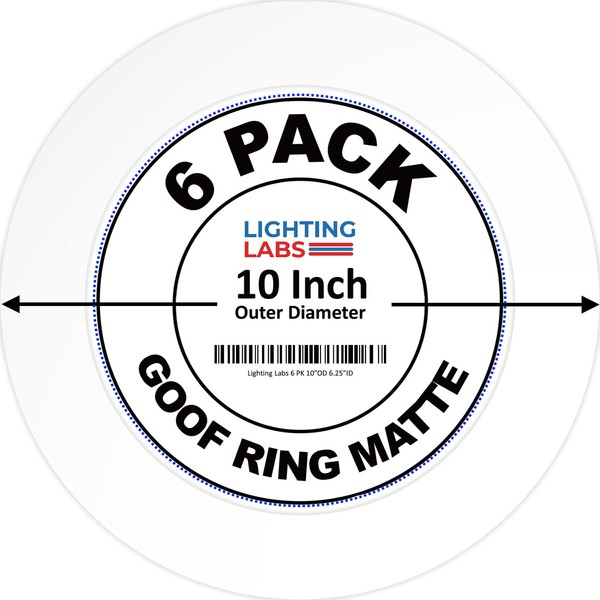 Lighting Labs 6 Pack Matte White Goof Trim Ring for 10" Inch Recessed Can Lighting Down Light, Outer Diameter 10 Inches, Inner Diameter 6.2 Inches