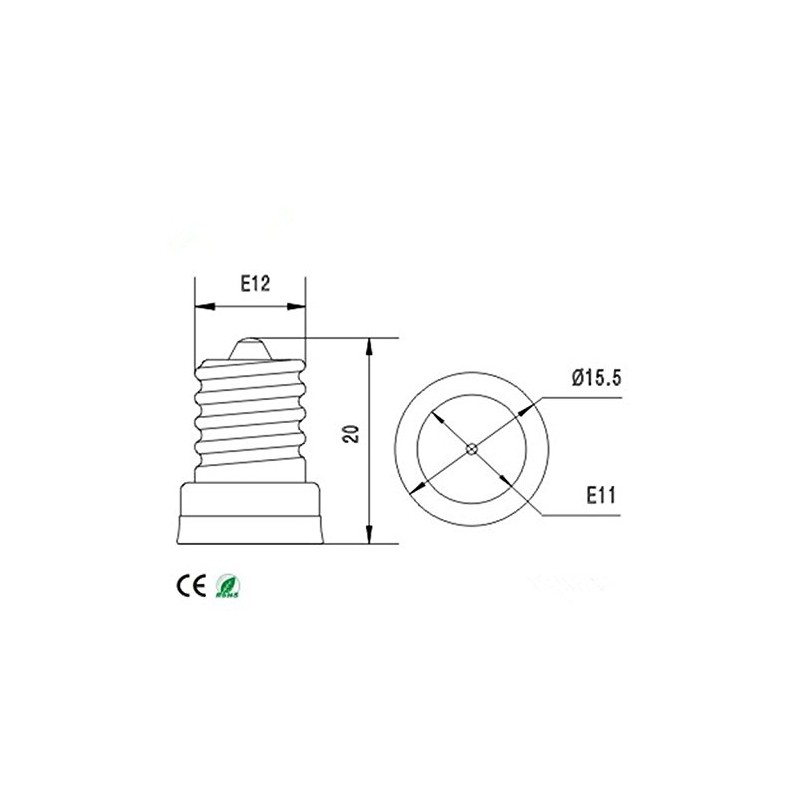 Model: E12-E11 Specification: 1. Brand new and high quality 2. E12 to E11 Led lamp Bulbs 3. For LED/Halogen/CFL Light Bulb Lamp 4. High temperature resistant 5.Suitable for all voltage (This product is only socket converter, it does not convert electrical voltage) 6. Materials: Aluminum & Plastic Package include: E12 to E11 converter