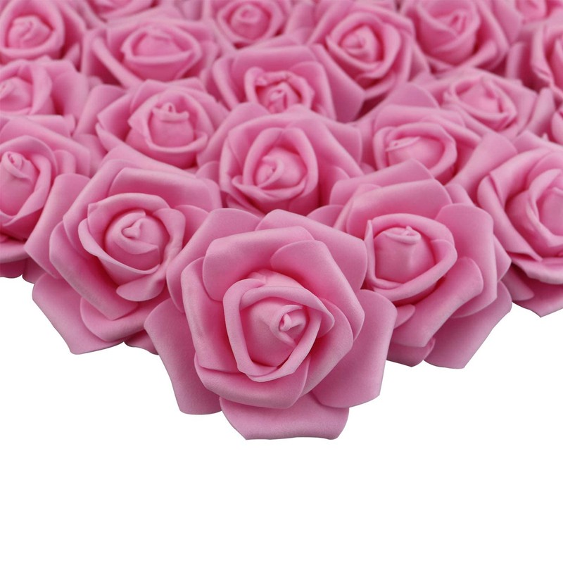 Lightingsky 3 x 1.6 x 3 inches 100pcs DIY Real Touch 3D Artificial Foam Rose Head Without Stem for Wedding Party Home Decoration (100pcs, Dark Pink)