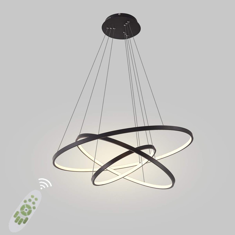 LightInTheBox Modern LED Chandelier 3 Ring Chandelier Dimmable Circular Dining Ceiling Pendant Light for Dinning Room Living Room 60+40+20cm (Black; Light Source: Stepless Dimming)