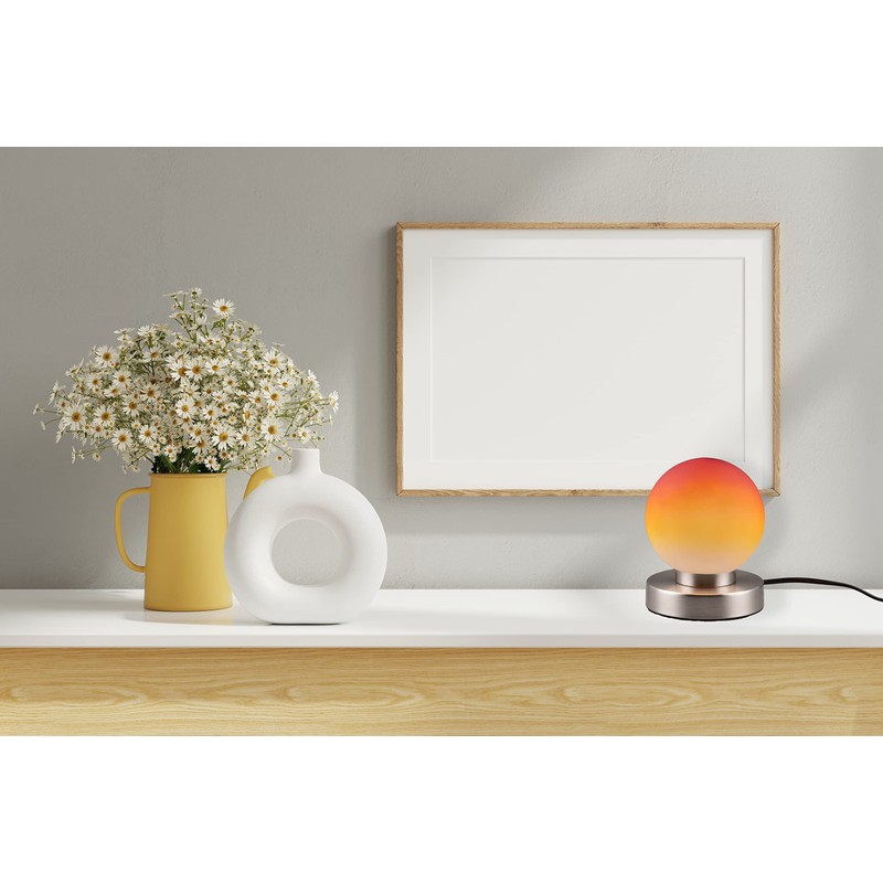 lightling Pekka Table Lamp with Base Matte Nickel Metal Glass Shade Orange Touch Function Excl. 1 x E14 Max. 40 W Diameter 12 cm Height 15 cm