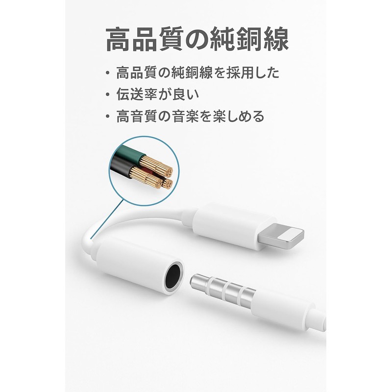 Lightning イヤホン変換ケーブル 3.5mmジャック iPhone対応 通話 音楽再生 アダプター ヘッドホン Zoom会議 テレワーク 学習用 Bluetooth転送方式