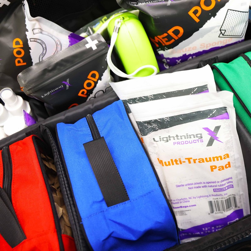 - Compact folded size (8” x 4” x 2”) — takes up 50% less space than standard trauma dressings