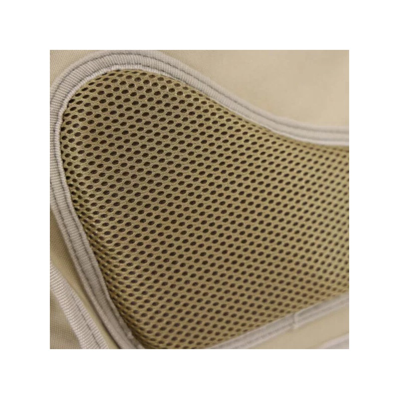 Strategically placed ergonomic mesh pads on rear provide padding from the weight of the bag and also allow for air to flow through a main channel to minimize perspiration