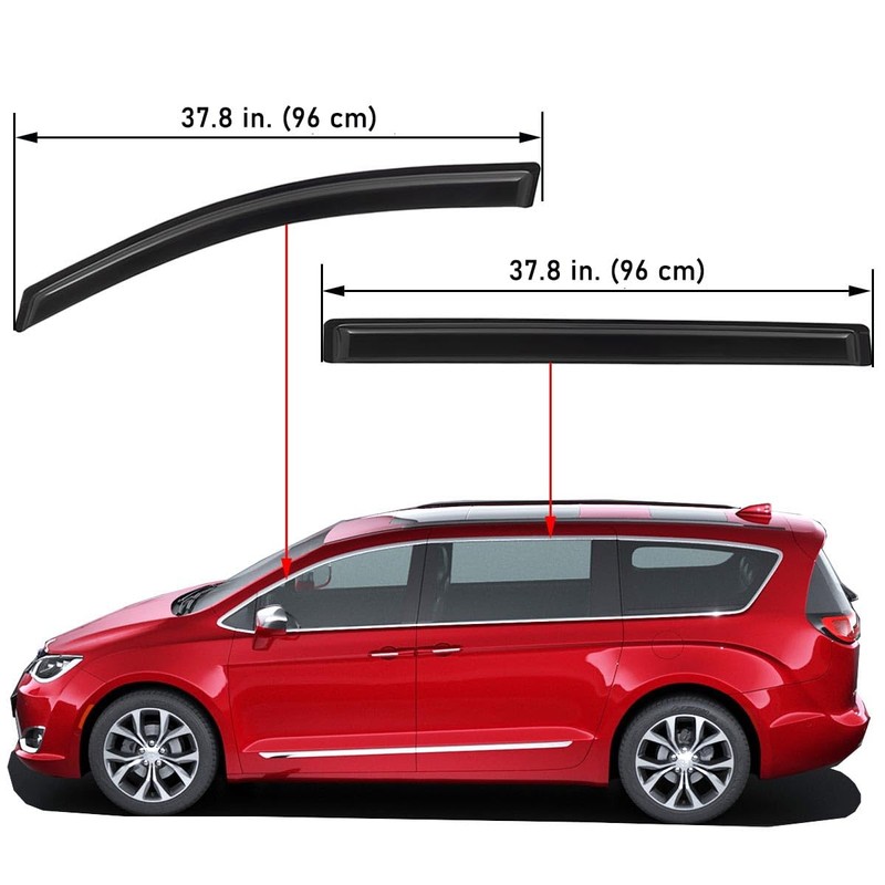 Lightronic WV94207 Outside-Mount Side Window Deflectors & Visors Vent Rain Guards, Dark Smoke, 4-Pieces Set, Fits 2017-2024 Chrysler Pacifica