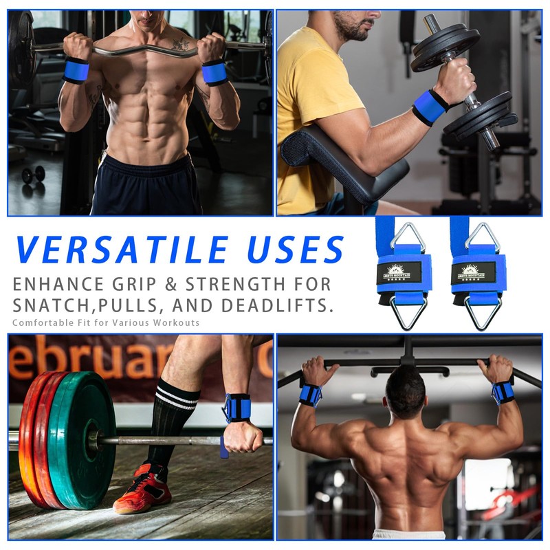 - ✅ 2-in-1 Design – Wrist Cuffs + Lifting Straps – Combines padded wrist cuffs for cable machine exercises with heavy-duty lifting straps for weightlifting, offering ultimate versatility for pull movements, lateral raises, and strength training.