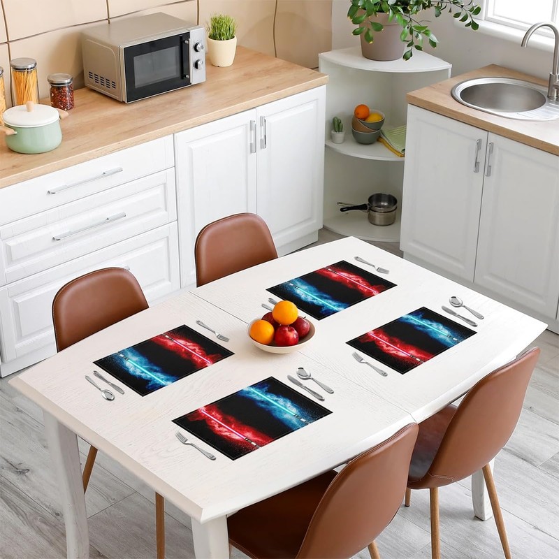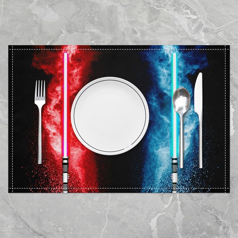 Lightsaber 12x18 Inch Placemats for Dining Table,Red Blue Tie Dye Waterproof Table Place Mat for Party Decoration,Future Technology Washable Table Mats Set of 4