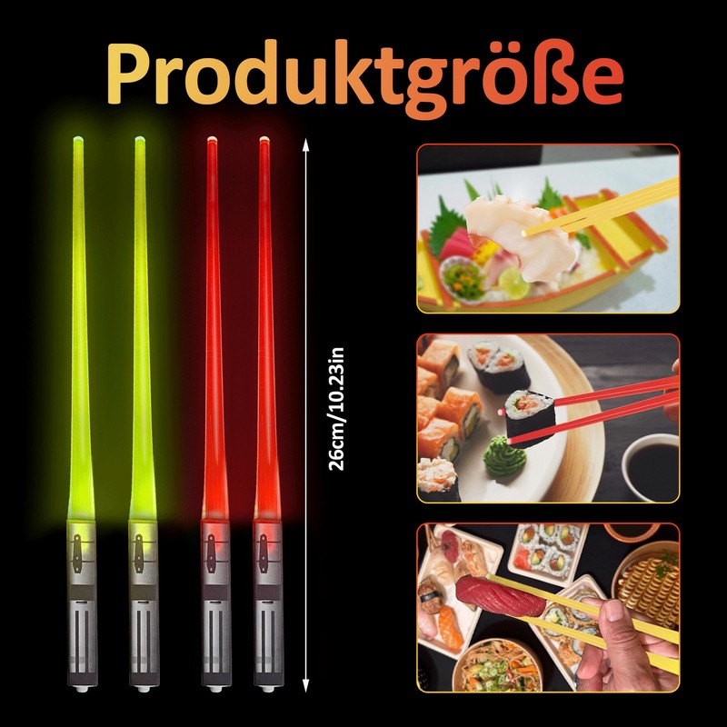 - Easy to carry: the LED light saber chopsticks are lightweight and easy to carry, ideal for travelling. They have an insulating function that helps you enjoy hot food. Whether you are on the go or dine at home, these chopsticks are always ready to use and ensure maximum comfort.