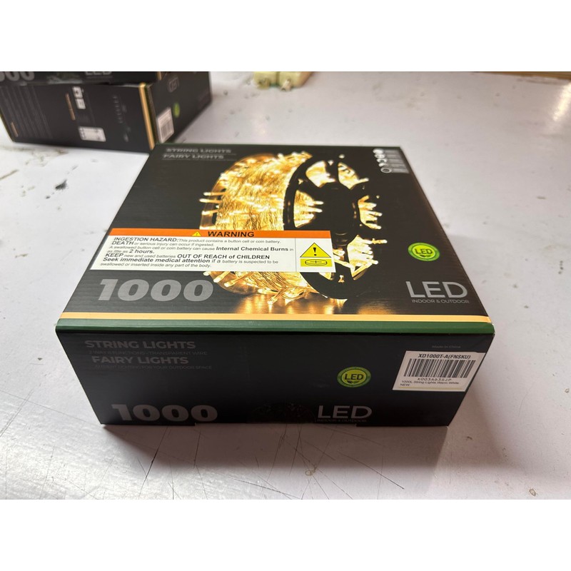 - Indoor Outdoor String Lights: Warm white 1000 LED lights, powered by electronic. Widely use to hanging Christmas tree and home decoration. 30V low voltage plug for safety use. Length between lights : 3.9 Inches. Total Length: 328ft.
