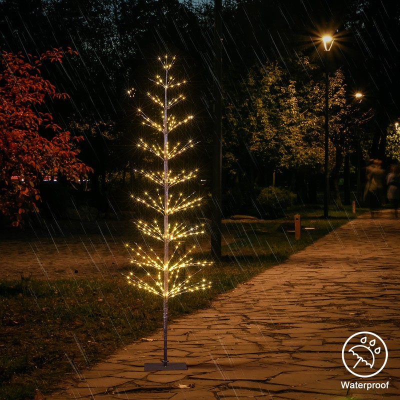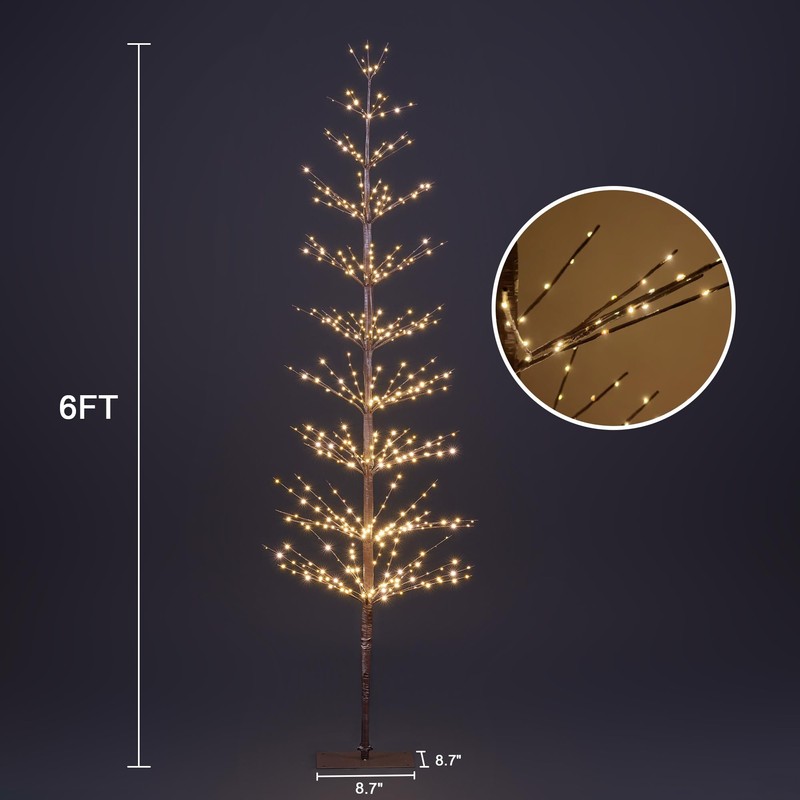- Elegant Design: 6FT 325L lighted Starlite tree with warm white twinke LED lights. Artistic looking, especially how the branches are laid out, warm white lighting and beautiful glow, which you could use year-round