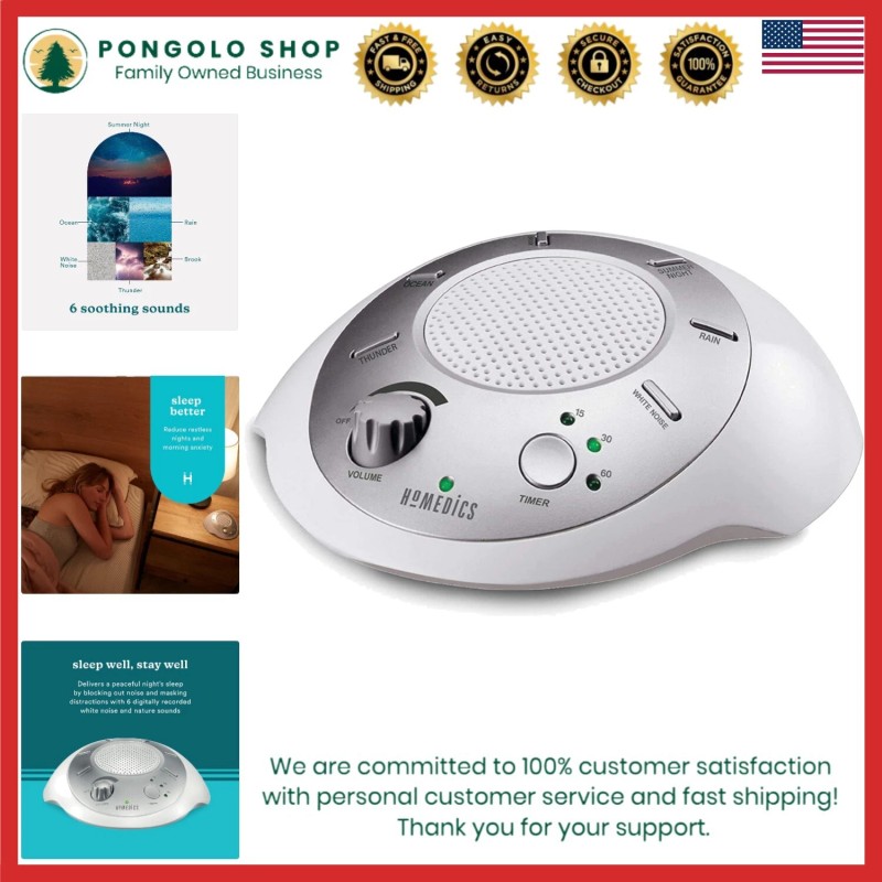 - 6 digitally recorded relaxing sounds to create a serene environment: White Noise, Thunder, Ocean, Rain, Summer Night, and Brook.