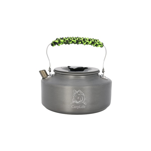 Lightweight Aluminium Camping and Fishing Kettle - CarpLife Products - Fishing Kettle - Camo Paracord Handle 1.1L Capacity - Hand Finished (Neon & Black Handle)