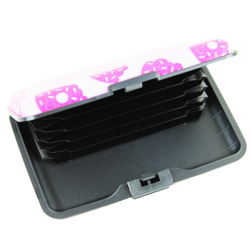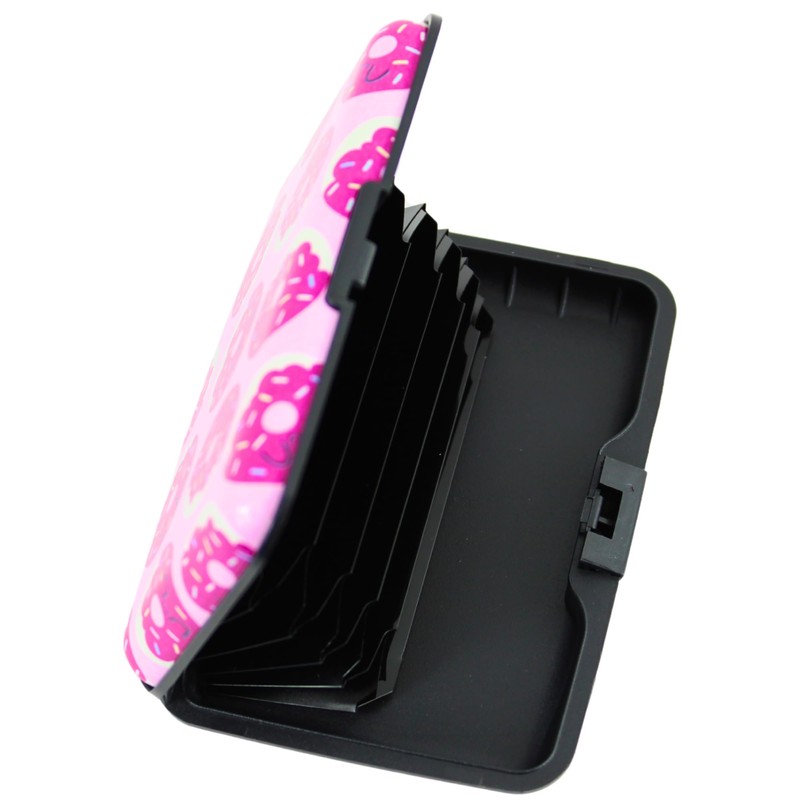 Lightweight Aluminium Card Holder with RFID Blocking Technology – Slim Hard Case Wallet for Credit Cards, Business Cards, & ID Cards – 6 Pockets, Fits 8 Cards – Multiple Colourful Designs (Donut)