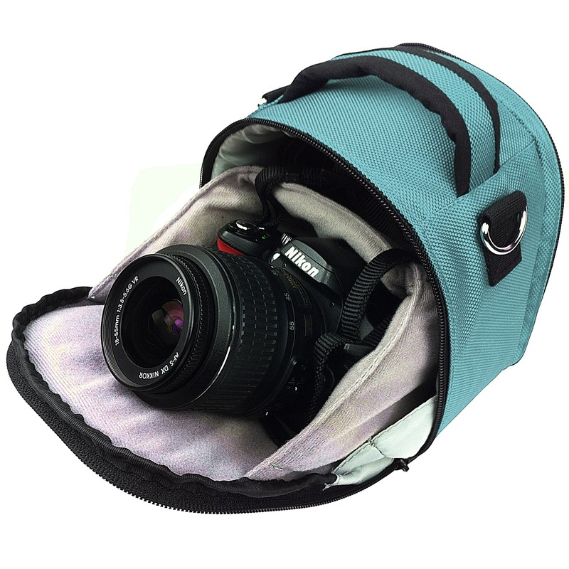 • The camera case offers 3 convenient carrying solutions. The first lets you carry the bag with the matching shoulder strap. The shoulder strap has neoprene padding for comfort and can be adjusted to anyone's size no matter how petite or big. The second option lets you attach the bag to your belt loop, travel bag or backpack by using removable carbineer. You can also use the top carrying handle for an easier, simple carrying solution.