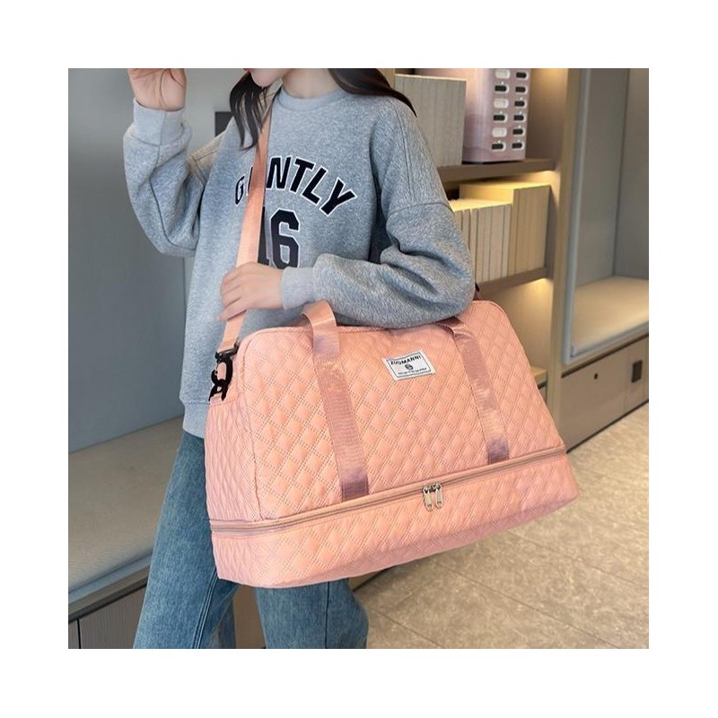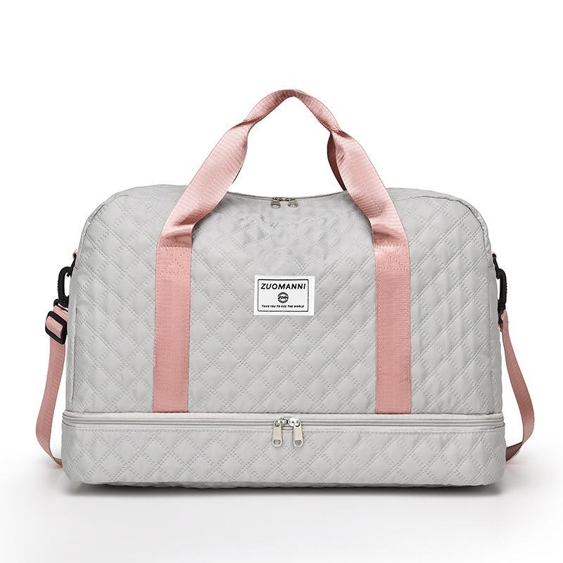 Lightweight Large Capacity Duffle Bag, Stylish Argyle Design, Perfect Carry On Luggage with Separate Shoe Compartment for Travelers - Color: Gray+Pink