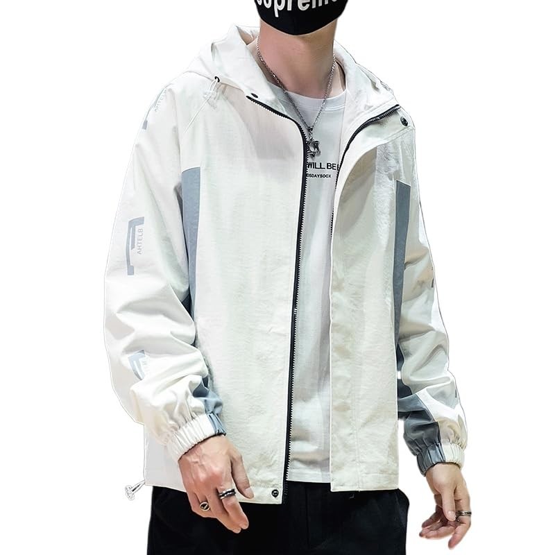 Lightweight Men's Jacket with Hood for Outdoor, Travel, Hiking, Windbreaker, Versatile, Stylish Design, Durable (US, Alpha, XX-Large, Regular, Regular, white)