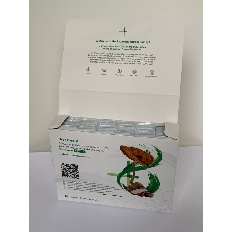 This listing includes box of Lignosus natural Lung supplement with 30 sachets