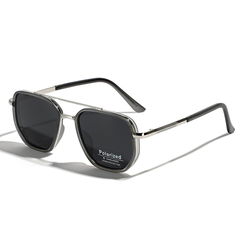 LIGOES TR90 Polarised Sunglasses Retro Square Flattop Sunglasses Double Bridge Full Frame UV400 Lens Glasses, Silver with black