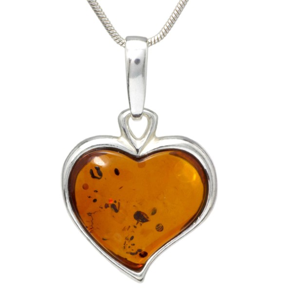 LIGURIUS NATURAL BALTIC AMBER STERLING SILVER 925 NECKLACE PENDANT Gemstone Heart Pendant For Women Size M & Silver Adjustable CHAIN Snake 45cm - 50 cm, Gift set