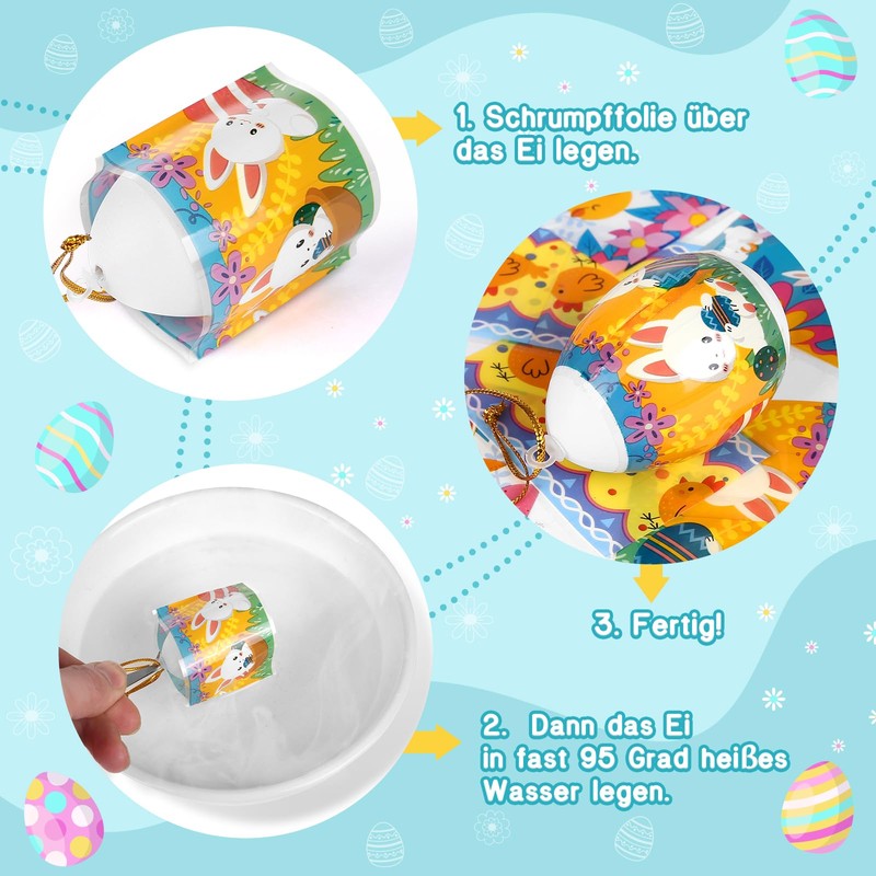 【Product Information】Creative Variety: There are three materials for crafting: shrink wrap, stickers and colored pencils, which can be used individually or in combination to meet children's creative imagination. Material: 4.2 x 5.8 cm eggs, made of plastic, safe and non-toxic, sturdy and durable for long-lasting use. Widely Use The Easter eggs are suitable for Easter and spring decorations, egg games and parties.
