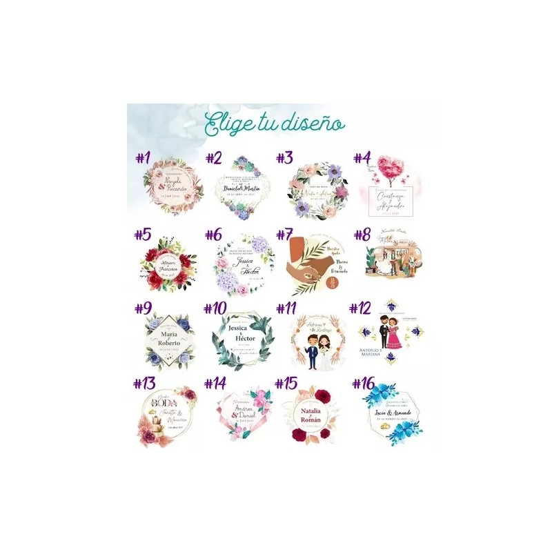 1. Elige el diseño. Tenemos diseños únicos para ti, o envíanos tu propia propuesta (jpg, png, pdf). Después de comprar envíanos por mensaje los detalles de personalización como nombre y fecha.