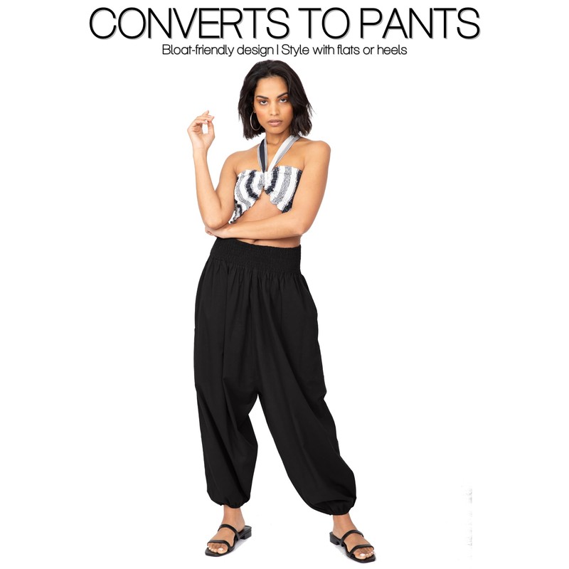 - Se convierte en pantalones Boho Harem: elige libremente otra parte superior a juego de tu clóset y tira de la parte superior hacia abajo hasta tu cintura para transformar el overol largo capri en pantalones de harén genio en un diseño amigable con la hinchazón que se puede llevar tanto en cintura alta como bajo en las caderas