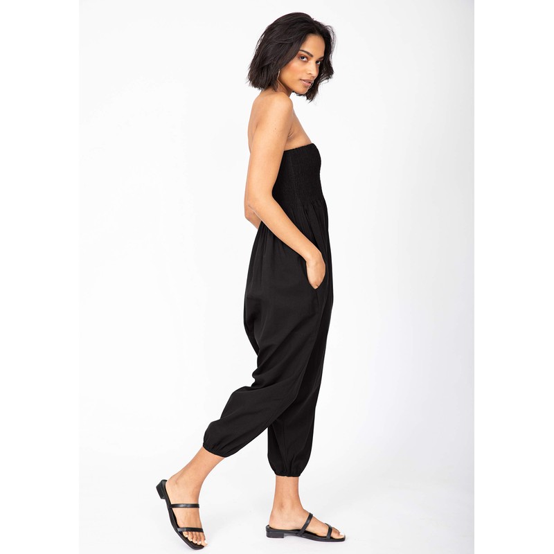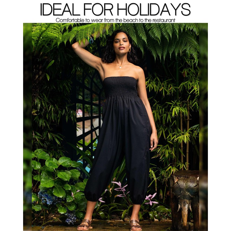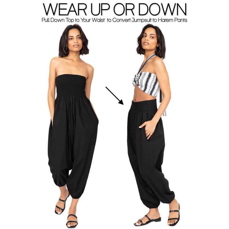 likemary 2 en 1 algodón harén Pantalones o Bandeau Jumpsuit, Negro