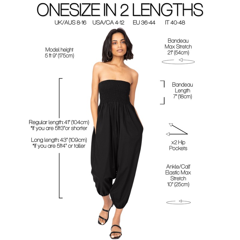 - Talla única para mujer: 4-12 de EE. UU. - Los mamelucos sin tirantes tienen un tamaño felixible ya que el bandeau elástico y el elástico en los tobillos significan que las mujeres de varias formas, curvas y tamaños pueden usar este jersey de longitud capri con estilo. Disponible en dos longitudes. Si tu altura es de 165 cm o más alta, elige "Talla única". De lo contrario, elige "Talla única".