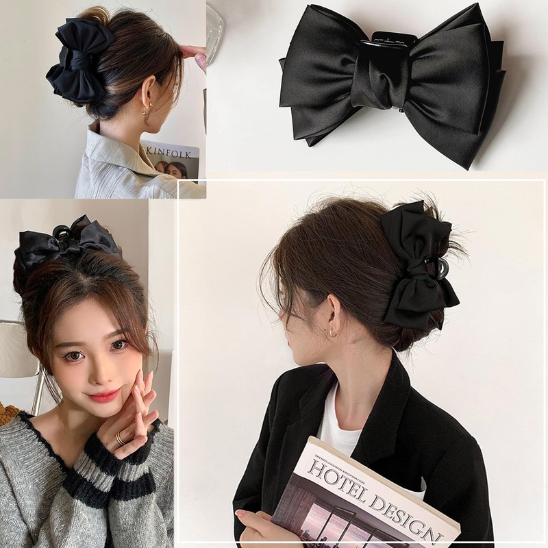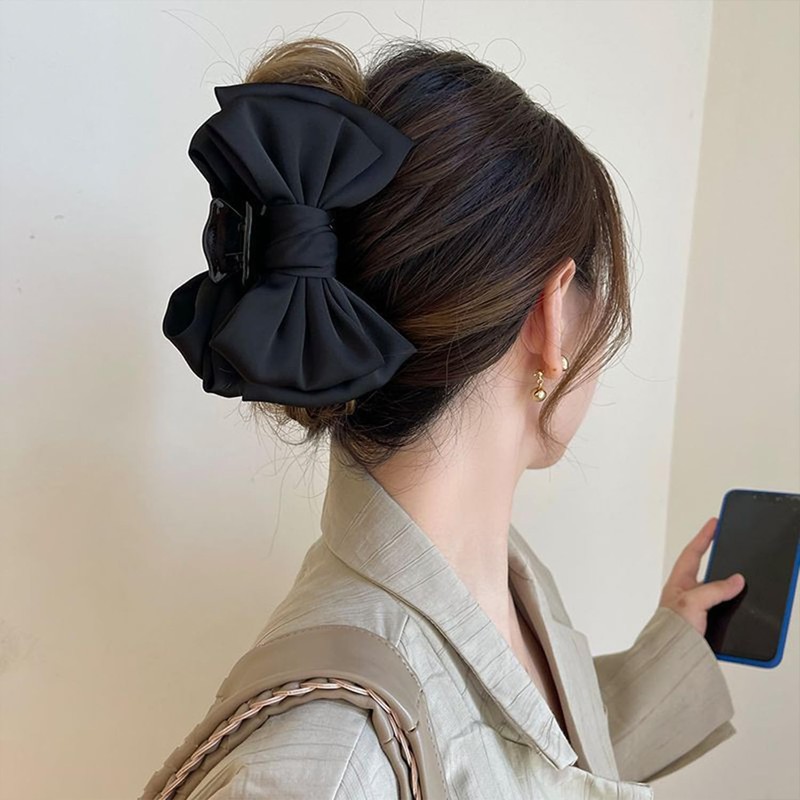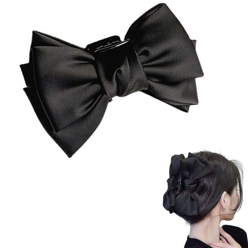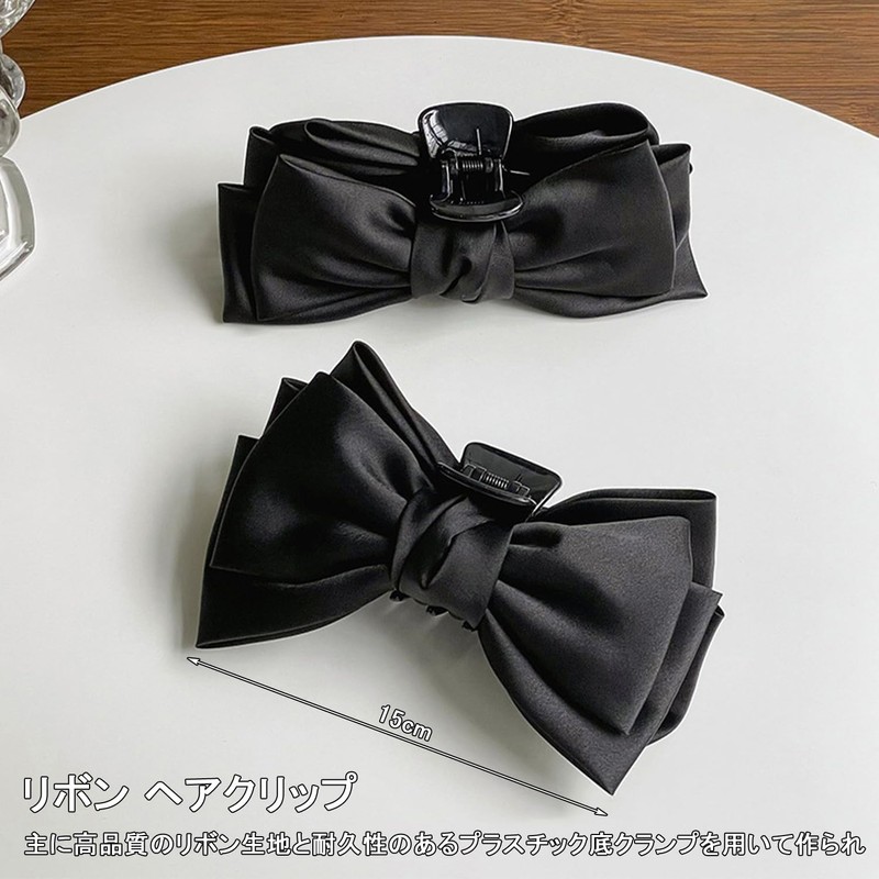 LIKENNY ヘアクリップ 大きめ リボン しっかりとまる バンスクリップ 髪留め クリップ おしゃれ 大人 日常 通勤 通学 ヘアアクセサリー (D(ブラック))