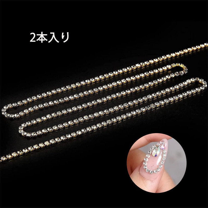 LIKENNY Nail Parts, 9.8 inches (25 cm), Chain Book, Rhinestone Chain, Cuttable, Thin, Silver, Accessories, Crafts, Nail Art, DIY Material, Fashion, Ornament, Nail Design, 2 Pieces, Total 19.7 inches (50 cm)