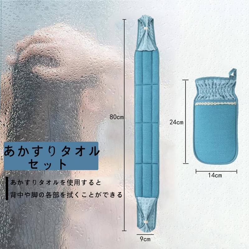 - (Set Contents) Set includes 1 scale mitten and 1 bodytal. Each size is 5.5 x 9.4 inches (14 x 24 cm), 3.5 x 31.5 inches (9 x 80 cm). This is the perfect set for those who suffer from shoulder pain and suffer from entering the bath