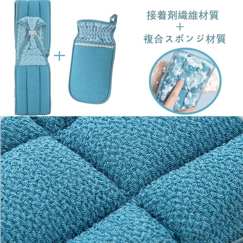 LIKENNY Smudge Set, Scum Rubbing Towel, Body Towel, Body Odor Care, Exfoliating, Foaming, Smooth Skin, Back Acne Countermeasure, Unisex, Akasuri Towel (Blue)