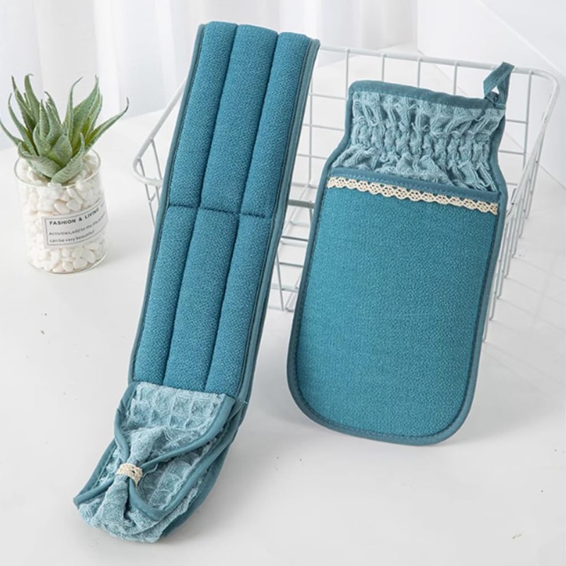 - 【MORE COVERAGE】:The body towel has grippy grips on both ends, so you can pull it lightly without folding it to provide a larger cover surface so that you can wipe each part of your back and leg. In addition, you can wash it after use and hang it on the hook to air dry
