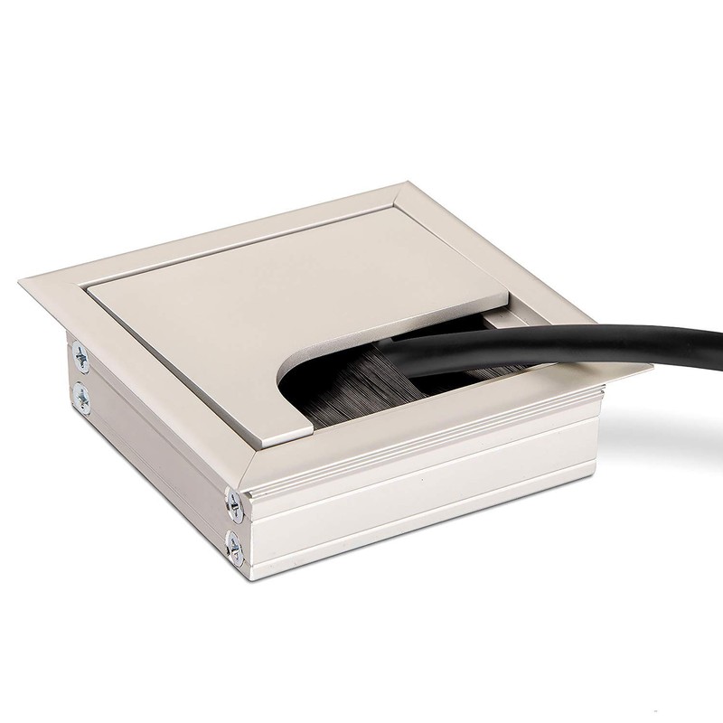 LIKERAINY Cable Bushing Desk Table Grommets 80x 80mm Cable Outlet Tidy Cover Insert Square Cube Wire Organiser Aluminum Anodised Silver Pack of 4