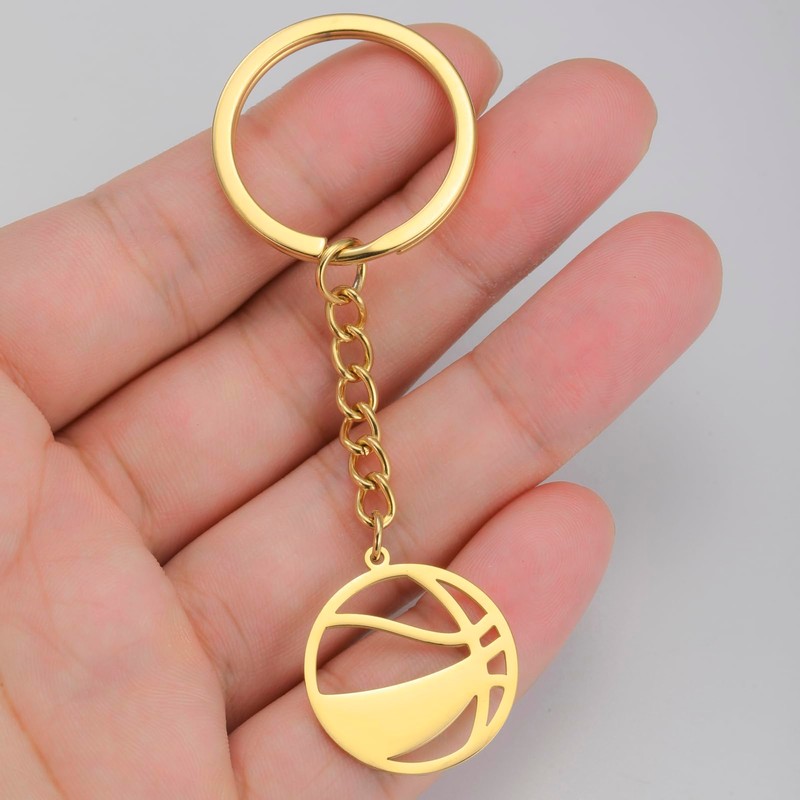 LIKGREAT Basketball Keyring Stainless Steel Basketball Keychain for Backpack Sports Basketball Accessories Jewellery for Basketball Lovers Athletes, gold, Unit size