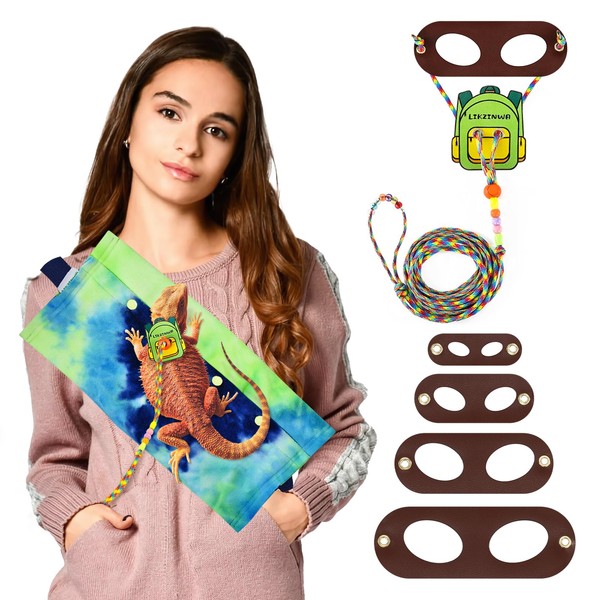 LIKZINWA Bearded Dragon Sling Carrier and Leash Harness,Small Animal Carrier with Adjustable Strap and 4 Size Pack Reptile Harness(Schoolbag+Carrier)