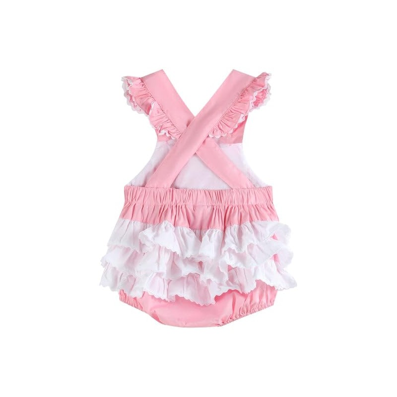 Dress your little one in pure sweetness with our dashing Flower Smocked Ruffle Romper.This adorable ensemble features a charming crisscross back, flutter sleeves, and a playful ruffle bottom. Delicately embroidered flowers add a touch of elegance to this irresistibly attractive outfit. Perfect for playdates or special occasions, this romper combines comfort with charming details for your precious one.