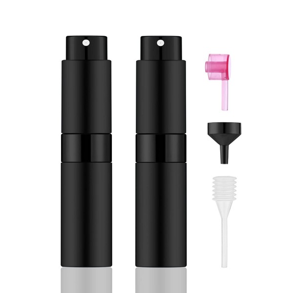 Lil Ray - Botellas atomizadoras recargables de viaje de 8 ml, mini pulverizador de colonia para hombres y mujeres (2 unidades, negro)