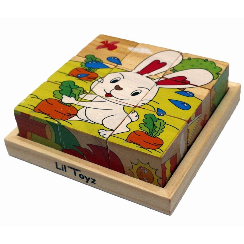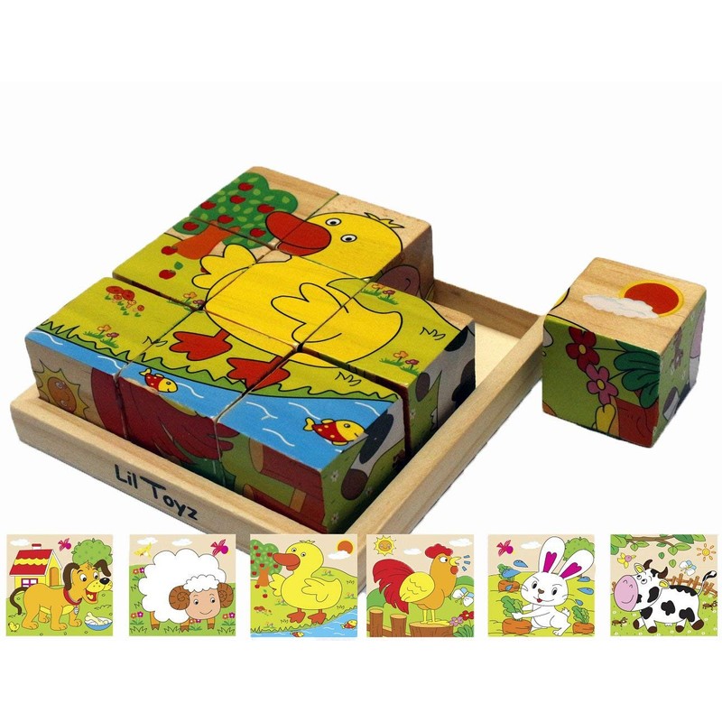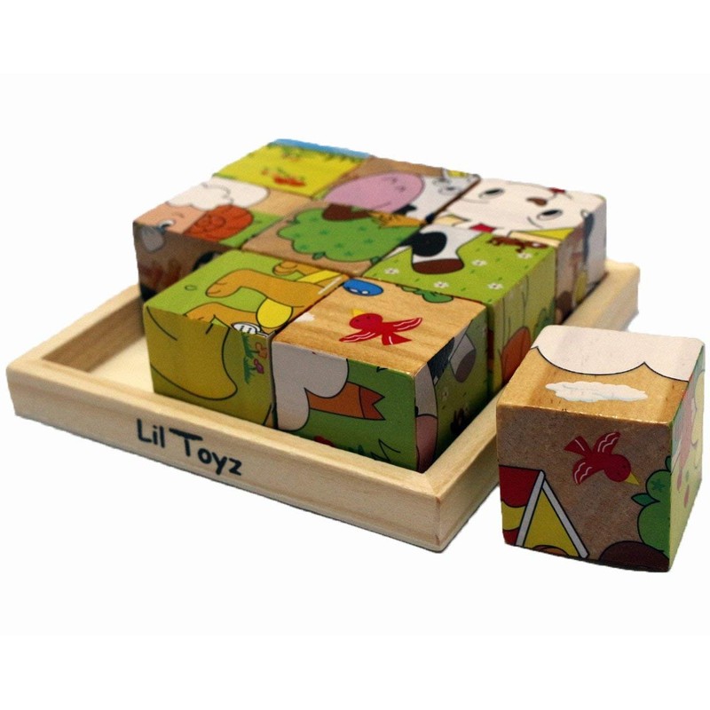 Lil Toyz Farm Animals Wooden Cube Puzzle