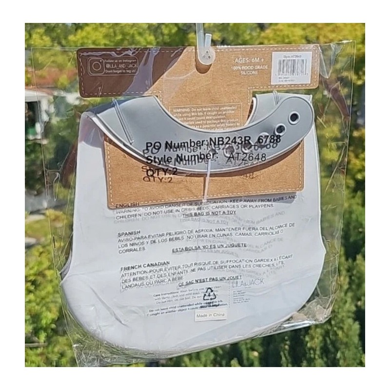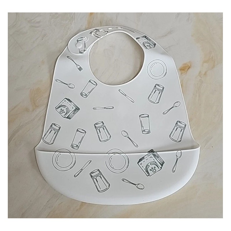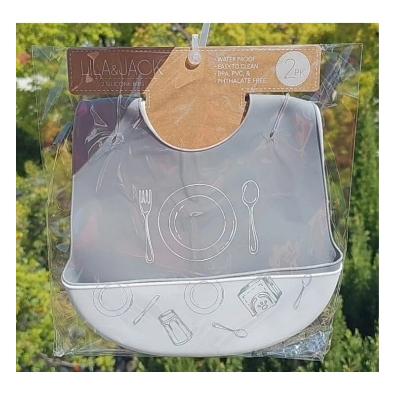 LILA & JACK 2 PK Gray/White Fork Spoon Silicone Bib NWT Brand New in Packaging