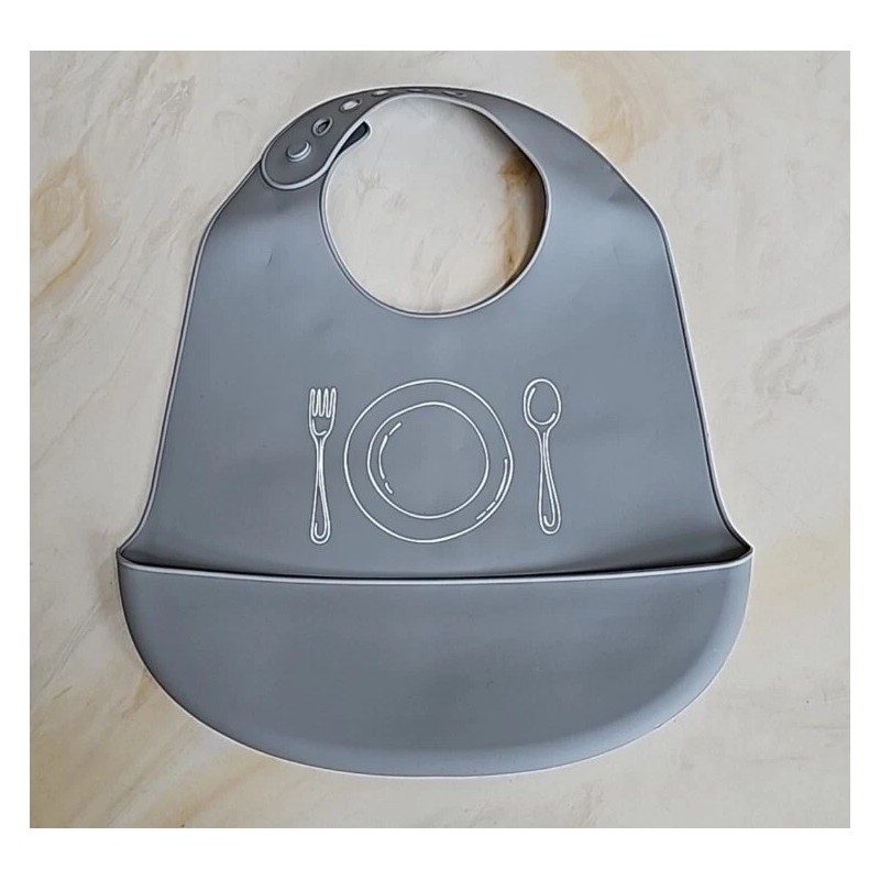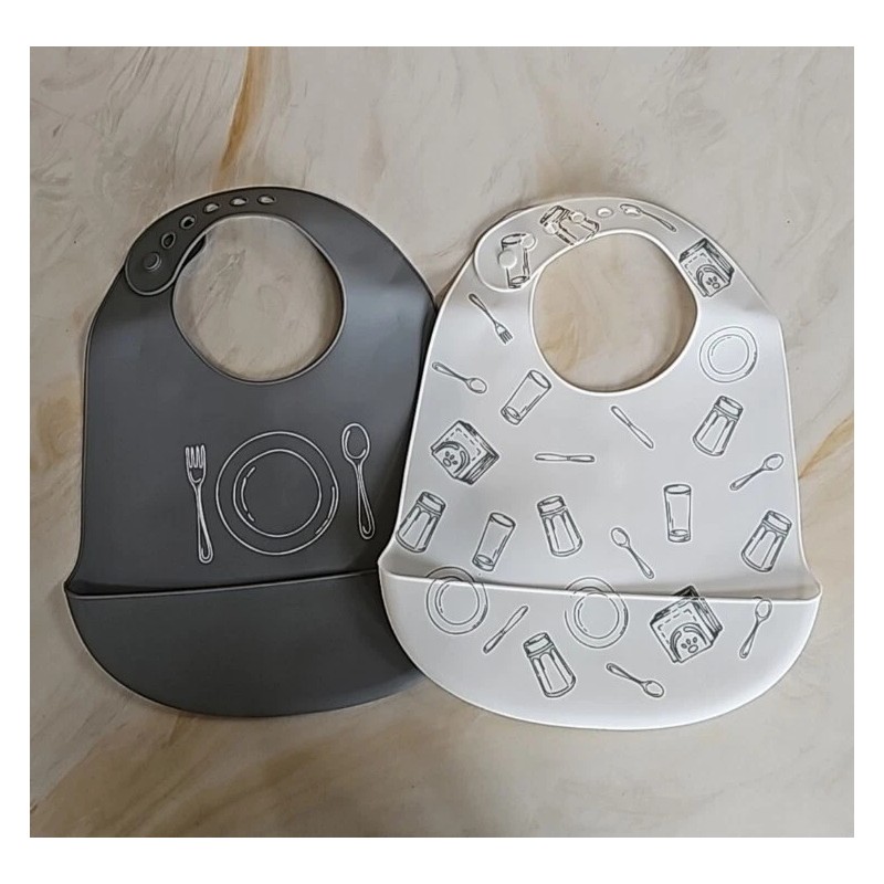LILA & JACK 2 PK Gray/White Fork Spoon Silicone Bib NWT