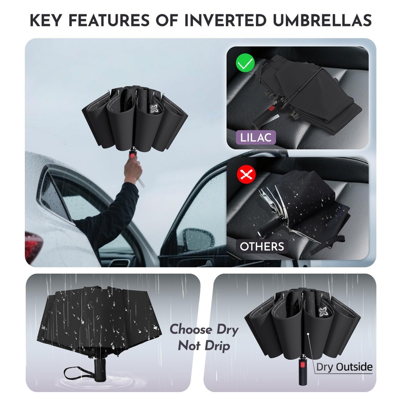 • 【INVERTED DESIGN DRIP-FREE】Fed up with soaking your car seats every time it rains? This reverse design locks rainwater inside when you close it—no more shaking off water or drips all over. Hop in/out of cars or cabs without getting your hands wet, and keep your ride 100% dry. Done.