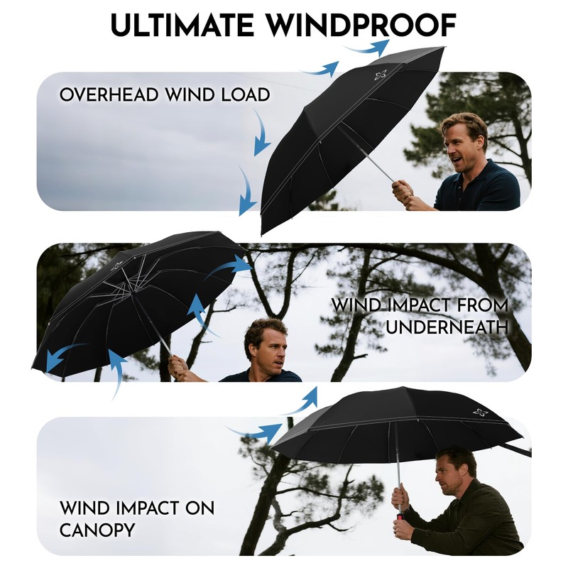 • 【54INCH, WINDPROOF 10-RIB BUILD】Crafted with aerospace-grade aluminum and resin-reinforced fiber ribs—30% lighter than steel, but tough as nails. Even if it flips inside out, a quick shake pops it right back, good as new. Stormy weather? Bring it on!
